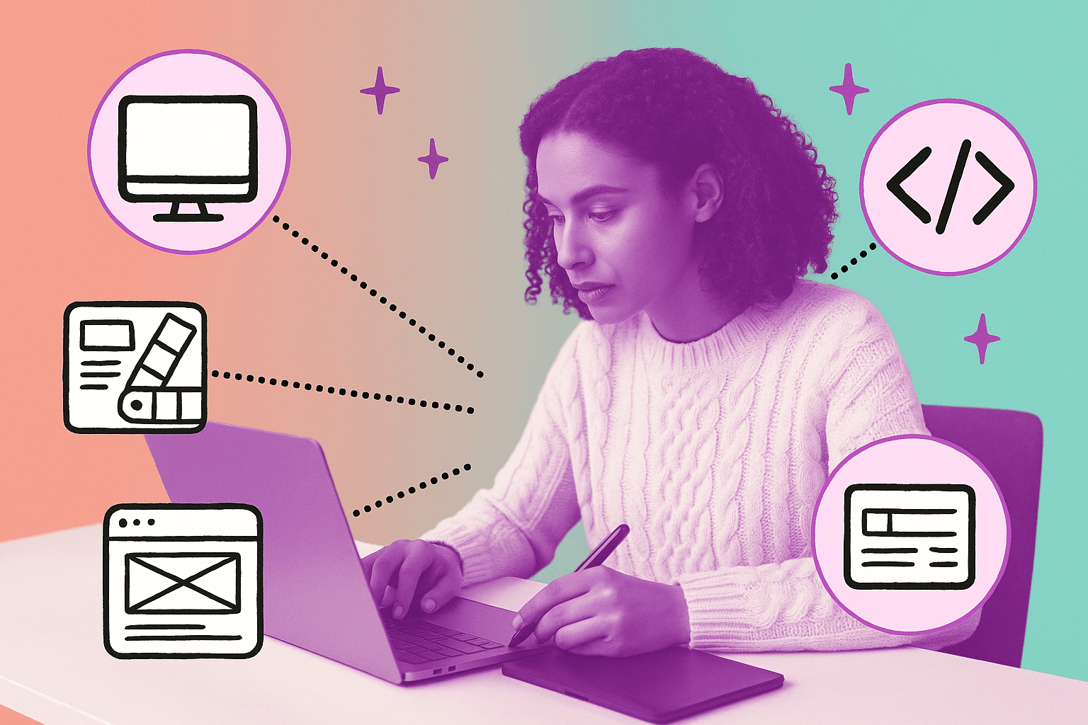 You don't need advanced coding skills to teach web design, but basic HTML and CSS knowledge is essential. Many successful web design instructors focus primarily on visual design principles and tools like Figma, then cover implementation through website builders like WordPress or Webflow. Students value practical skills over deep technical knowledge for most client projects.
