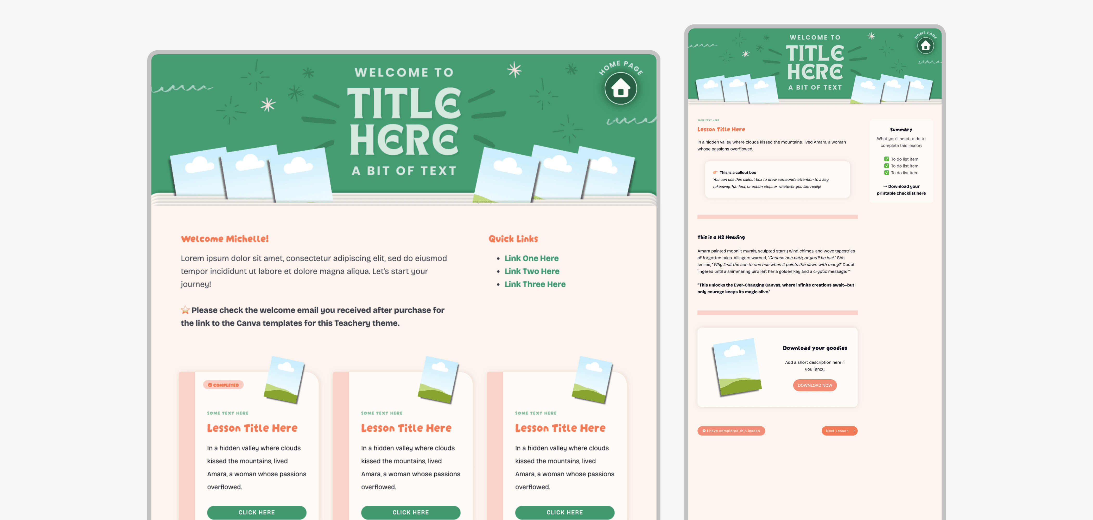 A Teachery theme with a playful, whimsical, book-inspired design that makes it ideal for creating courses that are approachable, creative, and inspire a sense of calm or adventure.