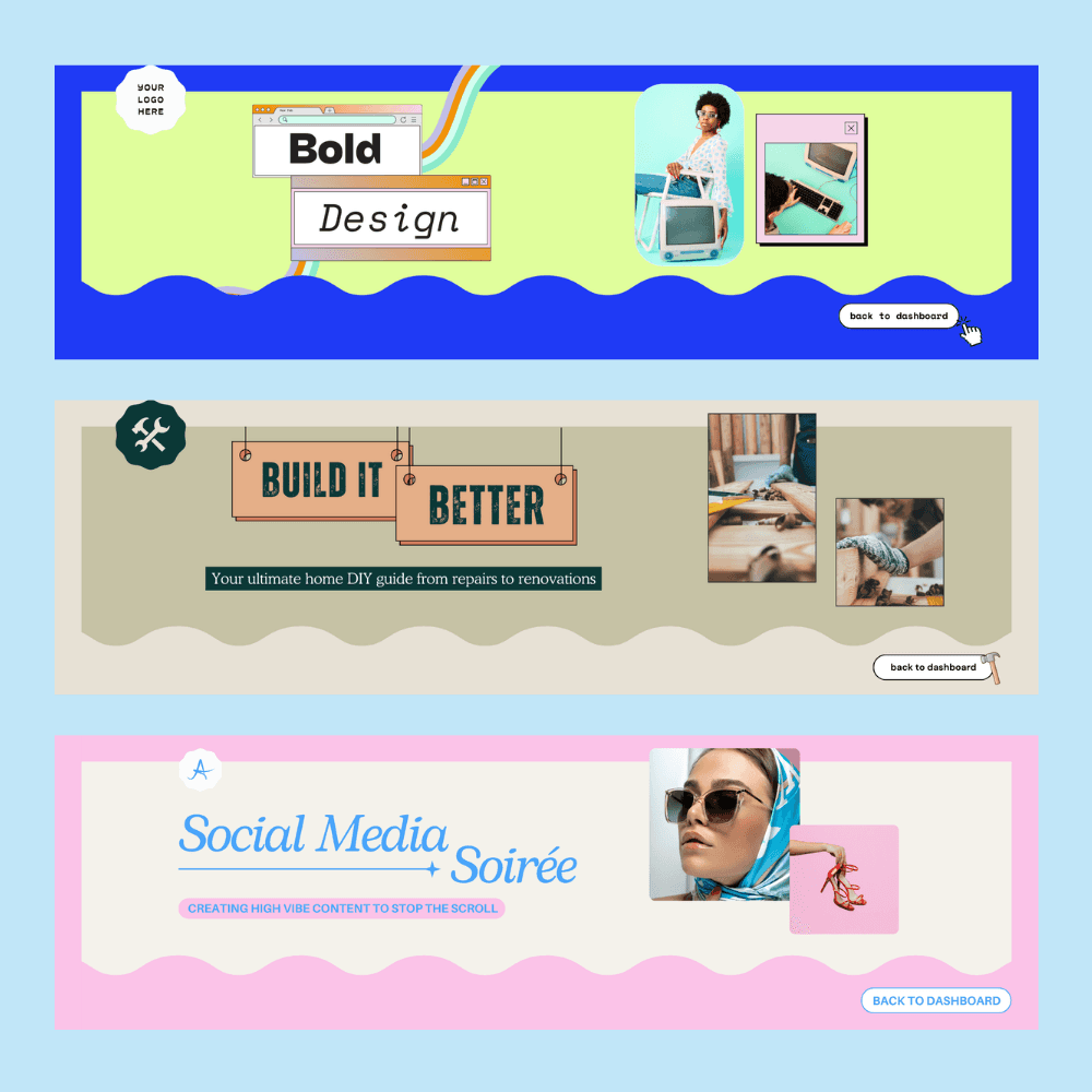 This Header Image graphic is bold, dynamic and fun. If you match the border color to your course background color, it creates a fun "window" effect highlighting the name of your course.