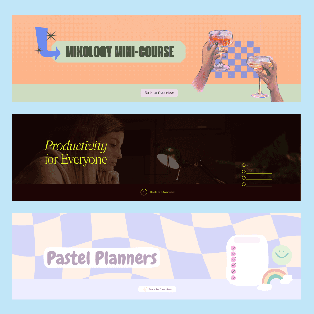 Design your Teachery digital products and online courses in a fraction of the time with this Canva Kit! Comes with template courses for you to customize, color palettes, font pairings, alternative card layouts and example courses to inspire you!